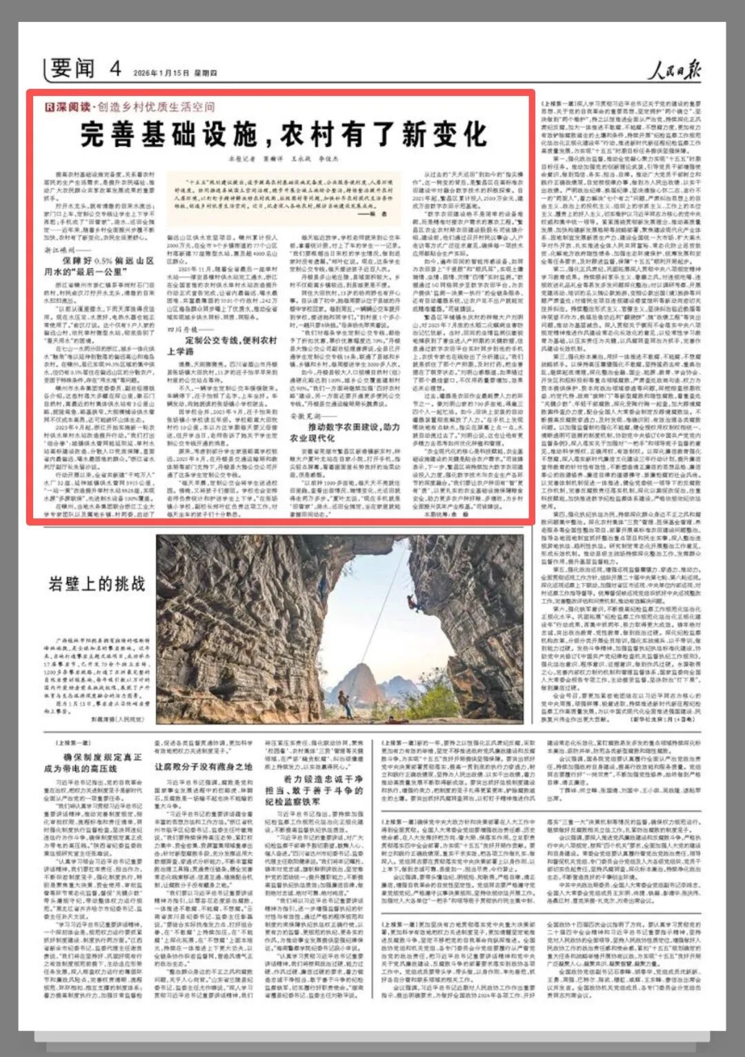 今天,《人民日?qǐng)?bào)》刊發(fā)《完善基礎(chǔ)設(shè)施,農(nóng)村有了新變化》,報(bào)道我市保障好0.5%偏遠(yuǎn)山區(qū)用水的“最后一公里”。