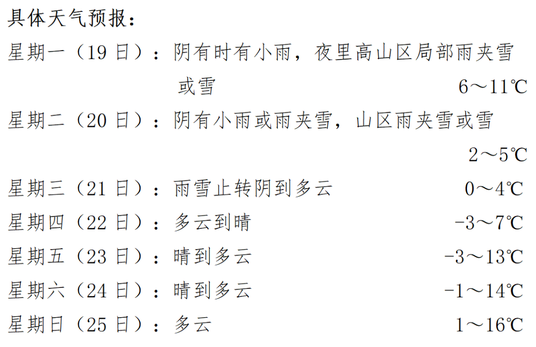 據(jù)市氣象臺(tái)消息,今天陰有時(shí)有小雨,夜里高山區(qū)局部雨夾雪或雪;明天平原地區(qū)陰有小雨或雨夾雪,山區(qū)雨夾雪或雪。后天早晨雨雪漸止轉(zhuǎn)陰到多云。