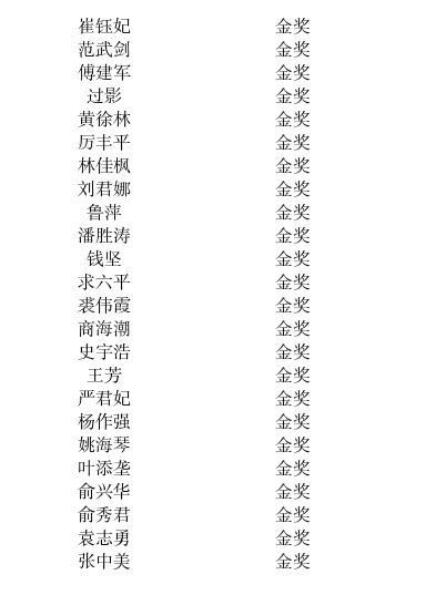 金獎(jiǎng)(24名)