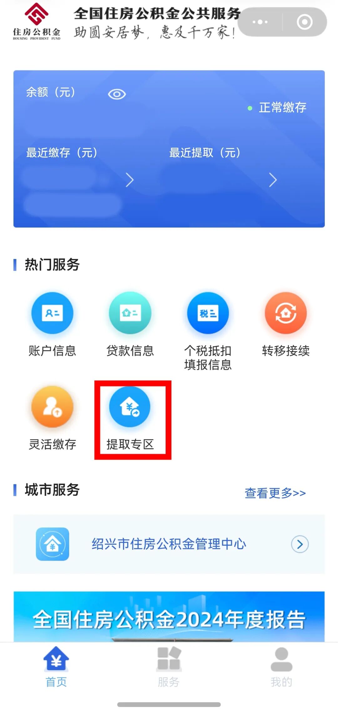 3. 進(jìn)入“提取專區(qū)”-“償還住房公積金貸款提取”服務(wù),在“賬戶管理”中根據(jù)個(gè)人需求選擇“單筆提取”或“按月約定提取”。
