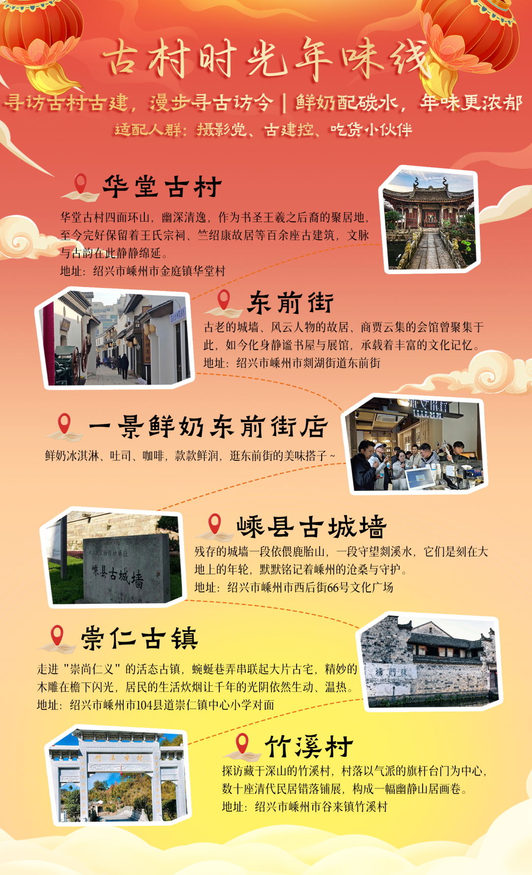 ???新春路線:華堂古村 → 東前街→ 嵊縣古城墻 → 崇仁古鎮(zhèn) → 竹溪村