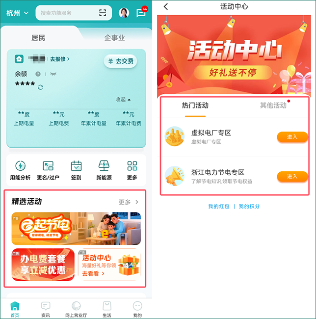 偷偷告訴你,網(wǎng)上國(guó)網(wǎng)App活動(dòng)中心版塊會(huì)不定期上線各種福利活動(dòng)哦,小伙伴們可以多多留意一下。