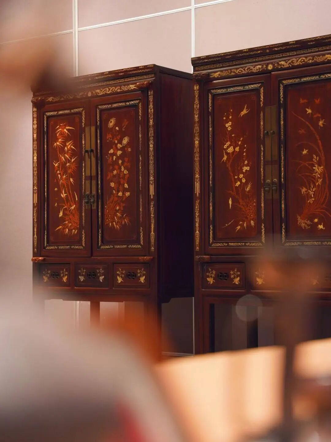 ?序廳:大氣磅礴的主題場(chǎng)景搭配新春裝飾,簡(jiǎn)潔布置暗藏巧思,瞬間將人拉入 “新春賞雅器” 的雅致意境,為這場(chǎng)跨越明清的匠心之旅拉開序幕。