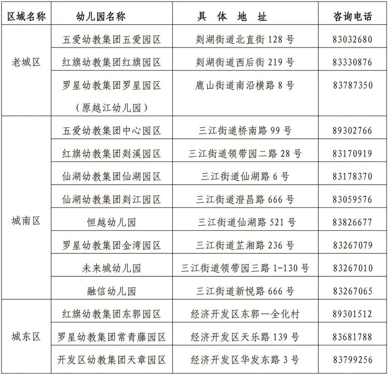 2026年城區(qū)市屬公辦幼兒園名單、地址及咨詢電話匯總表