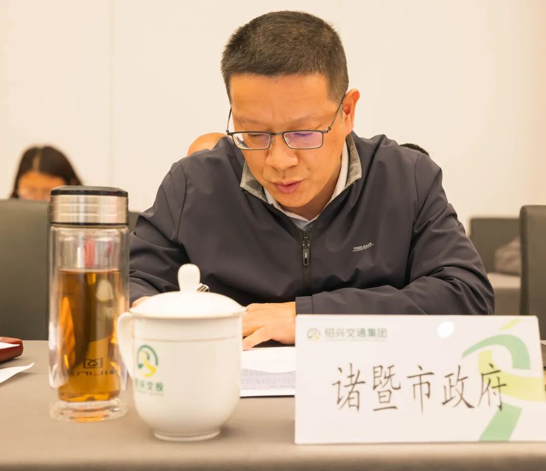 市交通集團(tuán)總工程師侯義輝宣讀指揮部成立文件,匯報(bào)諸嵊高速項(xiàng)目工作進(jìn)展