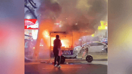 日前,蓮塘夜市一流動(dòng)餐車(chē)在營(yíng)業(yè)中突然起火,危急時(shí)刻,對(duì)面攤主“漢堡小哥”金宜杭第一時(shí)間抓起滅火器沖向火場(chǎng)。