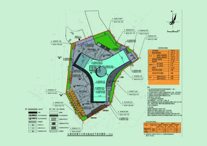 項目簡介:白雁坑香榧文化青創(chuàng)基地項目位于石璜鎮(zhèn)白雁坑村。白雁坑香榧文化青創(chuàng)基地總用地面積為3386.00㎡。根據(jù)總平面布置,總建筑面積為2188.15㎡(其中新建地上總建筑面積為1250.93㎡,新建地下總建筑面積為937.22㎡);建筑占地面積為1062.63㎡,建筑密度31.39%,地上容積率為0.37,地下容積率為0.28,綠地率14.53%。