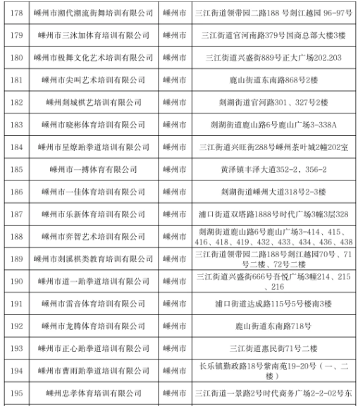 嵊州市非學科類培訓機構(gòu)白名單2026年即將到來,為維護廣大家長和學生的合法權(quán)益,現(xiàn)公布嵊州市已入駐全國校外教育培訓監(jiān)管與服務綜合平臺的非學科類培訓機構(gòu)名單,總數(shù)101家,其中體育類20家,文化藝術(shù)類7