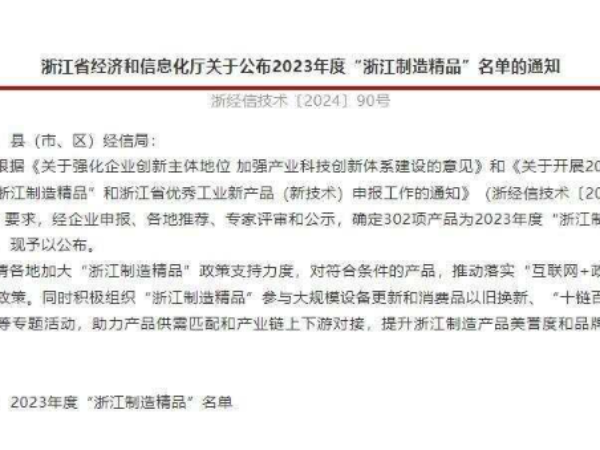 近日,經(jīng)企業(yè)申報、各地推薦、專家評審和公示,浙江省經(jīng)濟和信息化廳公布302項產(chǎn)品為2023年度“浙江制造精品”。其中,嵊州有三項產(chǎn)品上榜。它們分別是:浙江萬能彈簧機械有限公司的多軸聯(lián)動高速電腦數(shù)控卷簧