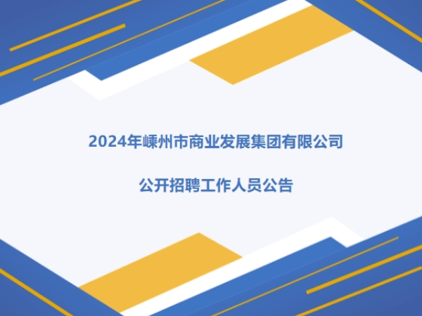 2024年嵊州市商業(yè)發(fā)展集團(tuán)有限公司公開招聘工作人員公告因工作需要,嵊州市商業(yè)發(fā)展集團(tuán)有限公司面向社會(huì)公開招聘工作人員,現(xiàn)將有關(guān)事項(xiàng)公告如下:一、招聘條件(一)應(yīng)聘條件1、具有中華人民共和國(guó)國(guó)籍;2、
