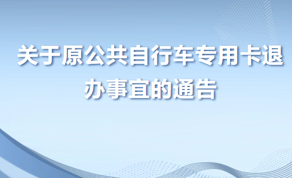 因原老舊公共自行車租車專用卡(含部分劃轉(zhuǎn)市民卡)已不再具備使用功能,我公司自2021年啟動退卡服務(wù),目前仍有部分卡未完成清退,為切實(shí)保障持卡人合法權(quán)益,現(xiàn)就退辦相關(guān)事宜再次通告如下: