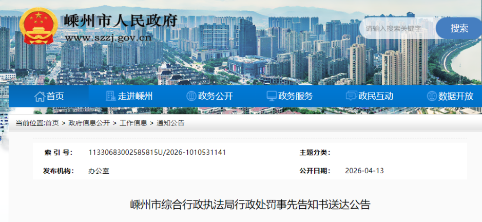 王*光: 因你(單位)與馬*在嵊州市抓捕3只畫眉鳥的行為,違反了《中華人民共和國野生動(dòng)物保護(hù)法》第二十一條之規(guī)定,屬非法獵捕國家重點(diǎn)保護(hù)野生動(dòng)物的行為。根據(jù)《中華人民共和國野生動(dòng)物保護(hù)法》第四十八條第一款及《浙江省林業(yè)行政處罰裁量基準(zhǔn)》6.02之規(guī)定,本機(jī)關(guān)擬對你(單位)作出如下行政處罰告知:處罰款人民幣壹萬伍仟元整(¥15000.00)。 因多次與你(單位)聯(lián)系未果,且本機(jī)關(guān)采取直接送達(dá)、留置送達(dá)、郵寄送達(dá)等方式均無法送達(dá),現(xiàn)依據(jù)《浙江省行政程序辦法》第六十六條、第七十一條之規(guī)定,向你(單位)公告送達(dá)《行政處罰事先告知書》(嵊綜執(zhí)罰告字〔2026〕第000030-2號)。自公告發(fā)出之日起經(jīng)過十日,本機(jī)關(guān)視為送達(dá)。 對本機(jī)關(guān)擬作出的上述行政處罰,根據(jù)《中華人民共和國行政處罰法》第四十四條、第四十五條的規(guī)定,你(單位)依法享有陳述、申辯的權(quán)利。如你(單位)對本機(jī)關(guān)擬作出行政處罰決定的事實(shí)、理由、依據(jù)及內(nèi)容等有異議的,應(yīng)在收到本告知書起5個(gè)工作日內(nèi)向本機(jī)關(guān)提出書面陳述、申辯意見,或到本機(jī)關(guān)進(jìn)行口頭陳述、申辯。逾期不提供陳述、申辯意見,本機(jī)關(guān)將依法作出行政處罰決定。 附件:《行政處罰事先告知書》(嵊綜執(zhí)罰告字〔2026〕第000030-2號).pdf 聯(lián)系地址:嵊州市綜合行政執(zhí)法局 聯(lián)系人:汪步云、杜立峰 聯(lián)系電話:0575-83331927 特此公告。